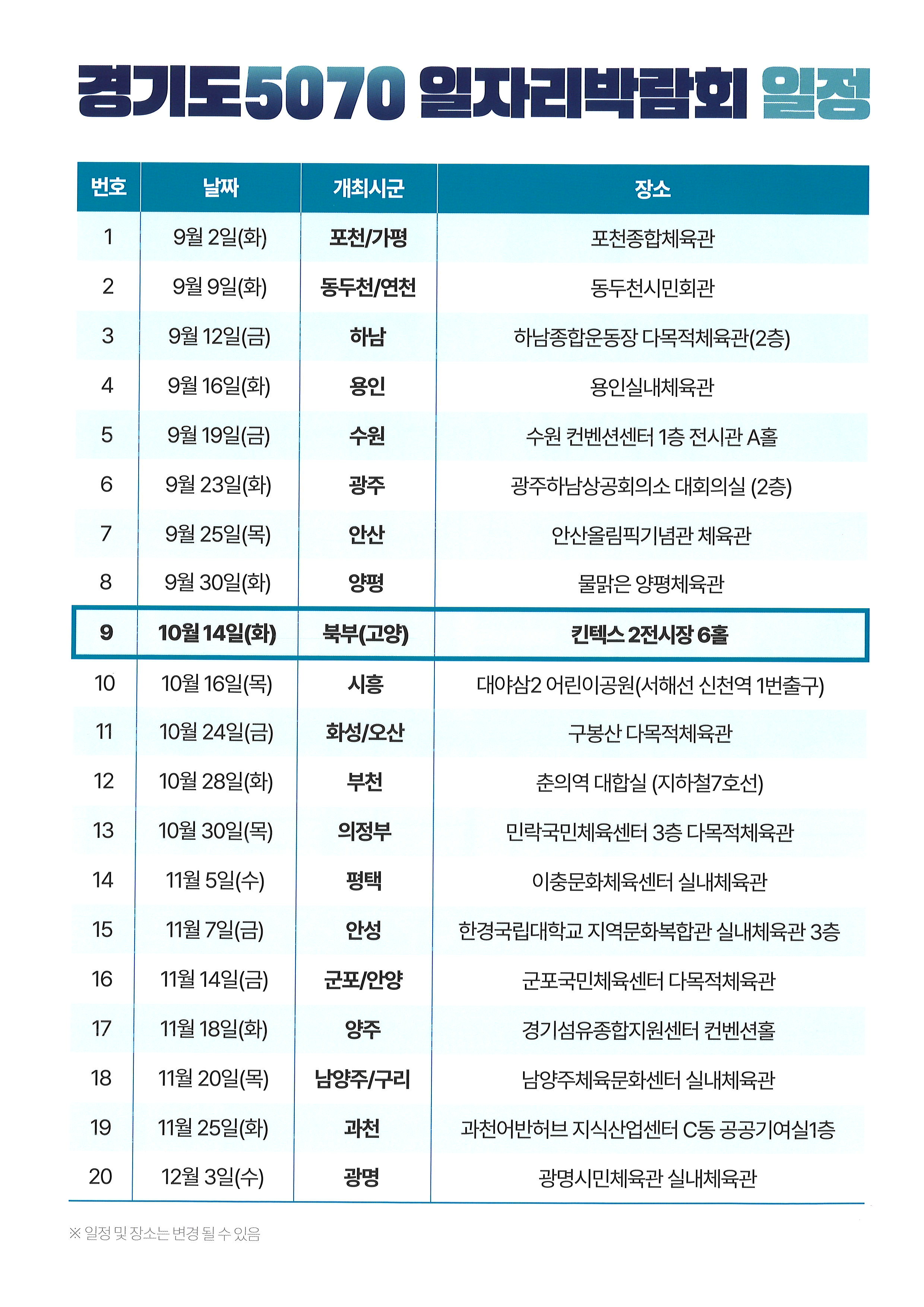 ‒ | [경기도] 2025년 5070 일자리 박람회 경기북부권역 개최 안내 |