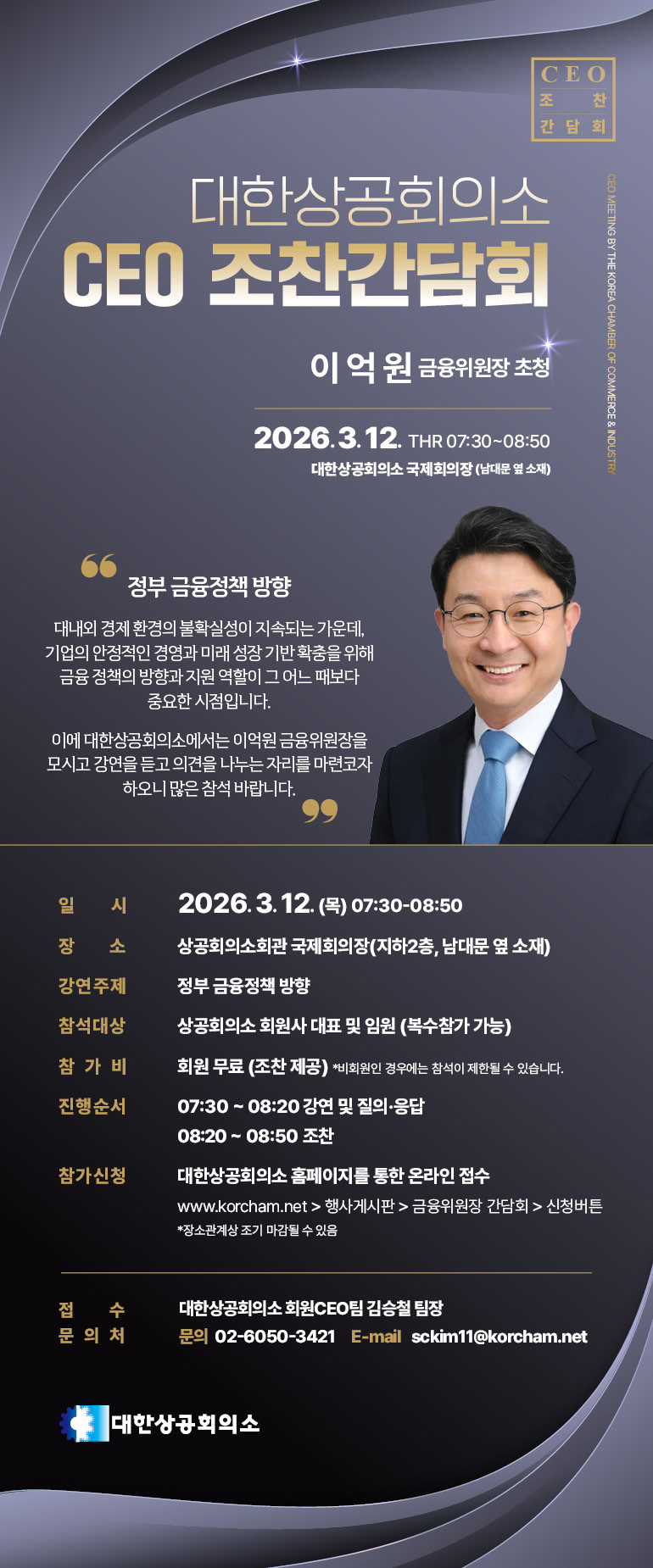| ‒ | 금융위원장 초청 대한상공회의소 CEO 조찬간담회 참석 안내 |