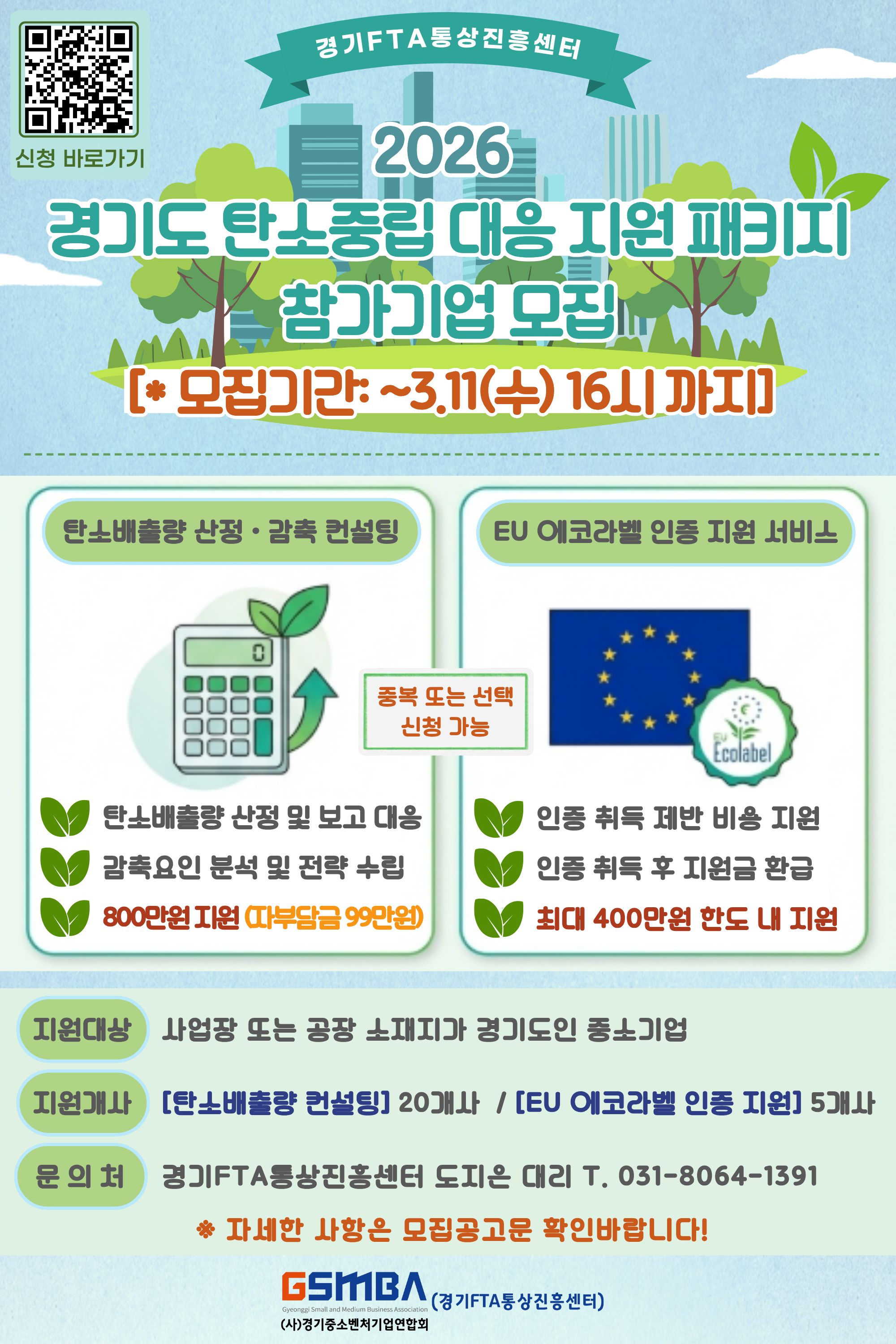 | ‒ | 2026 경기도 탄소중립 대응 지원 패키지 지원사업 모집 안내 |