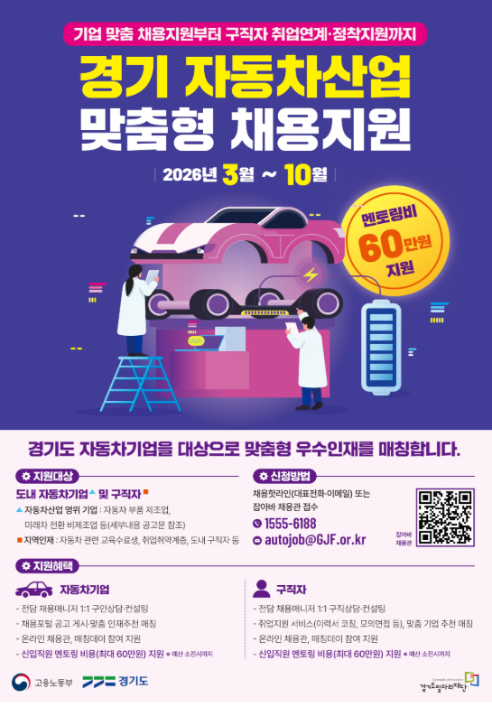 | 제목 | 2026년 경기 자동차산업 맞춤형 채용지원 사업 참여자 모집(참여기업 및 구직자) | ||