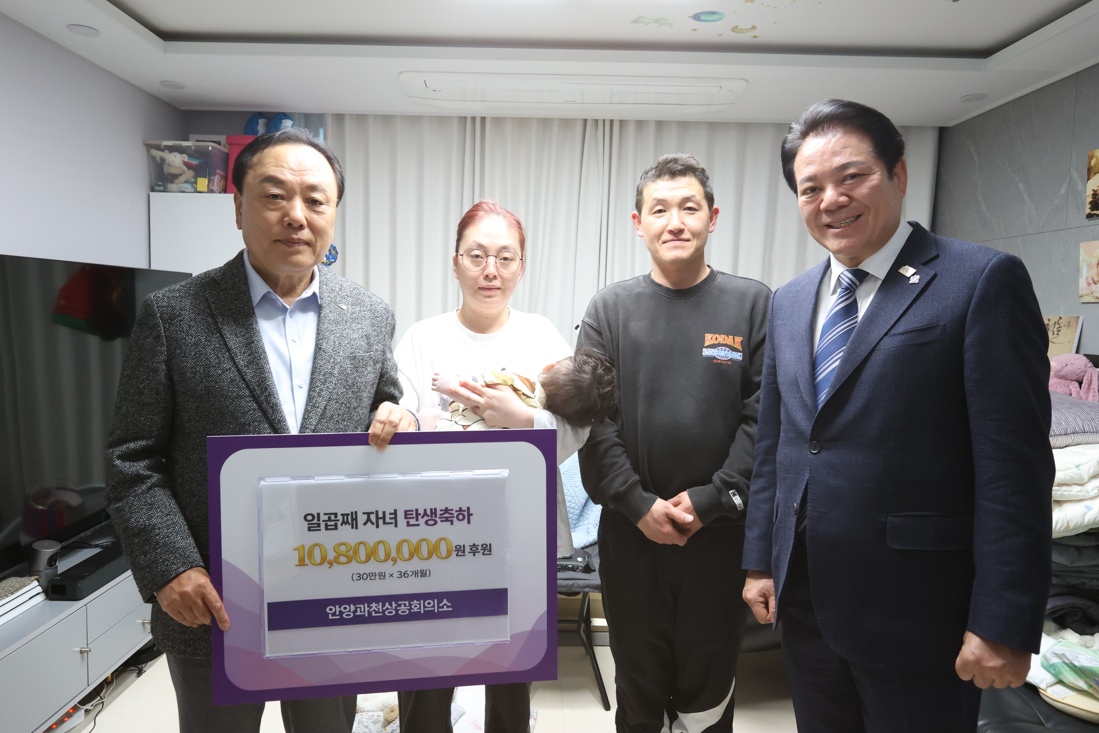 안양과천상공회의소(회장 배해동)는 안양시와 체결한 다자녀 출생가정 지원사업 추진 상호협력 업무협약'을 바탕으로, 3월 25일(수) 안양시(시장 최대호)와 함께 다자녀 가정을 방문해 출산을 축하하고 격려했다.
